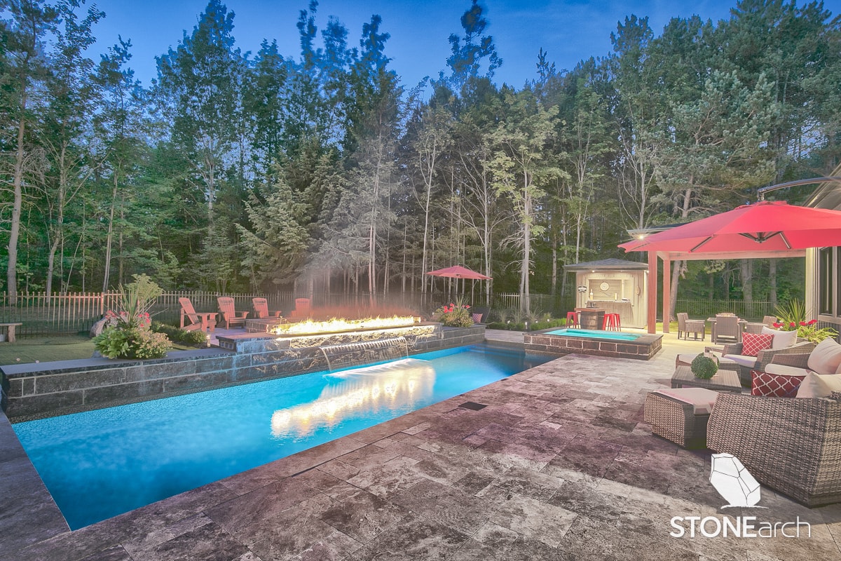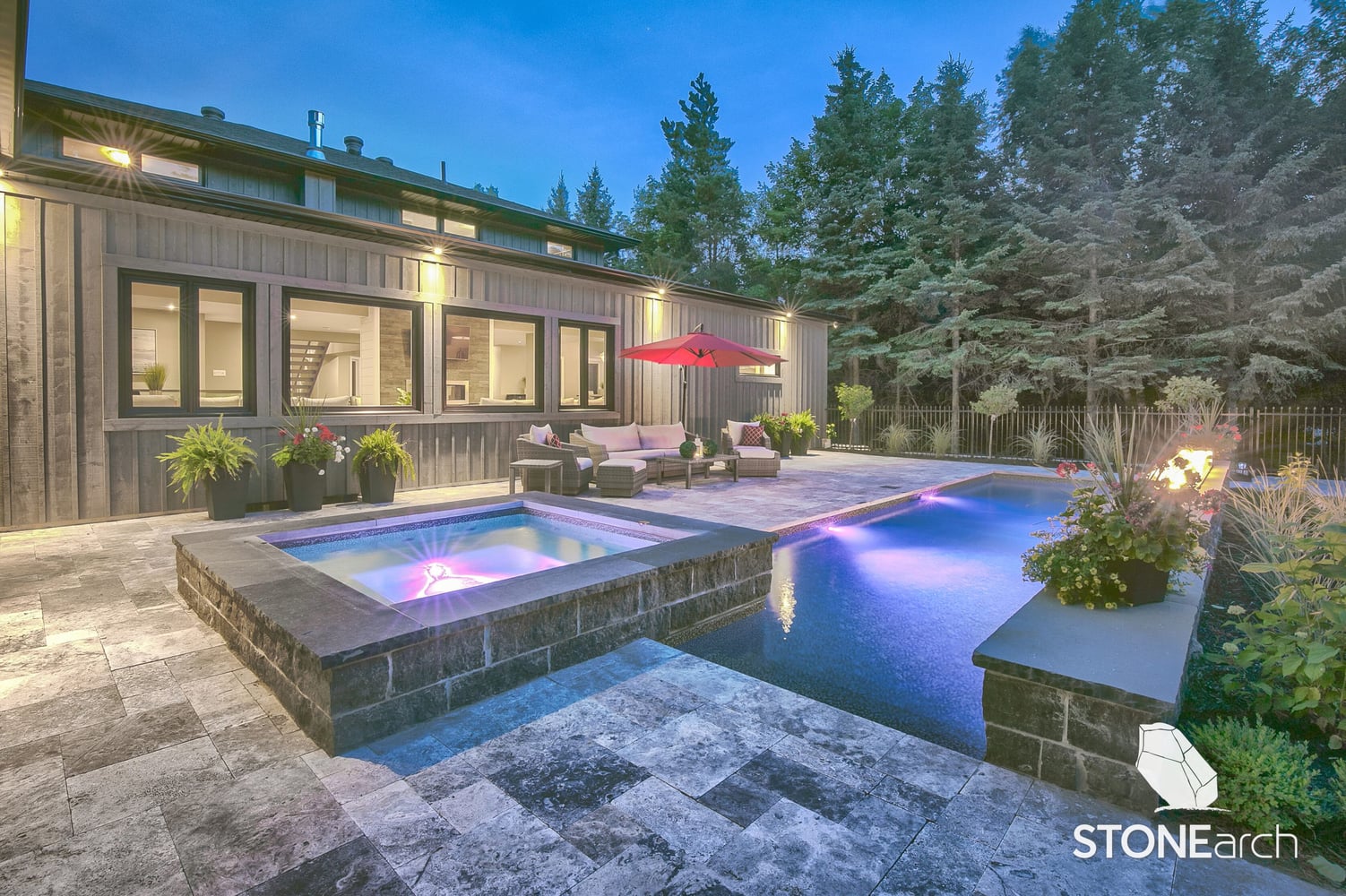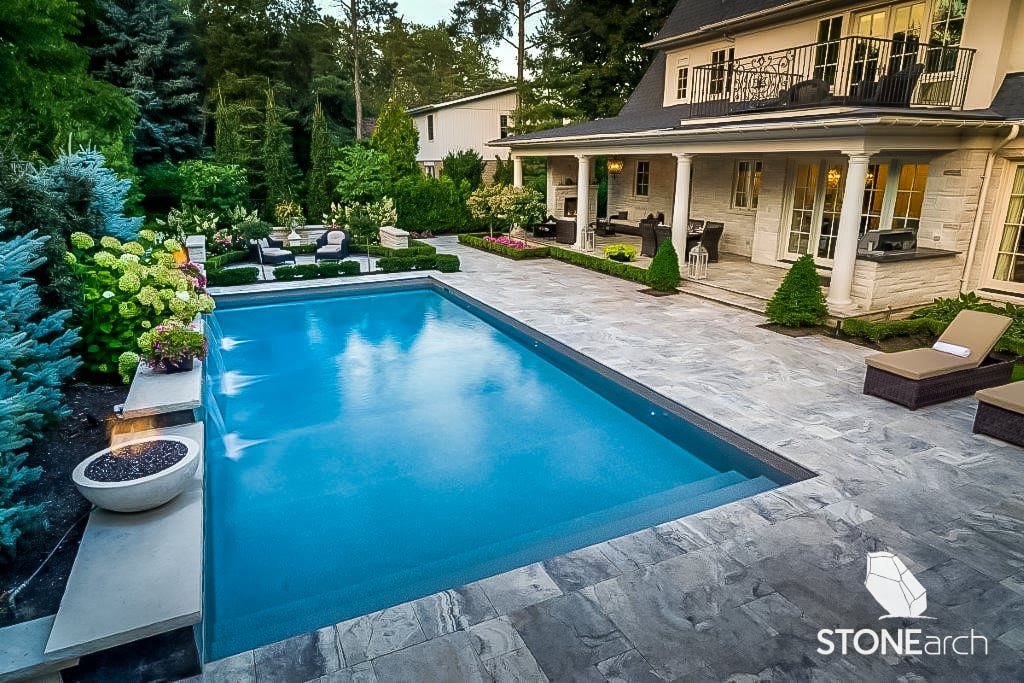 Gray Mix is travertine stone with warm & neutral tones of cream, beige, gray & blue color tones. Honed and tumbled finish of Gray Mix Cobbles gives it the right choice for stone for million dollar homes. These classic tumbled cobbles for pool deck is the most popular landscape stone for landscape architects of Ontario & Quebec. The travertine stone has tiny holes that give it an anti-slip & antique character. It is the most friendly stone to bare feet. This stone is a recent introduction to our extensive product range of premium landscape stones. Gray Mix represents premium landscape stone and it is meant for high-end landscape projects. This stone can be used as the most modern landscape stone. This stone is available in a variety of products such as Tumbled Cobbles, Straight Edge Copings, Bullnose Copings & custom landscape products.