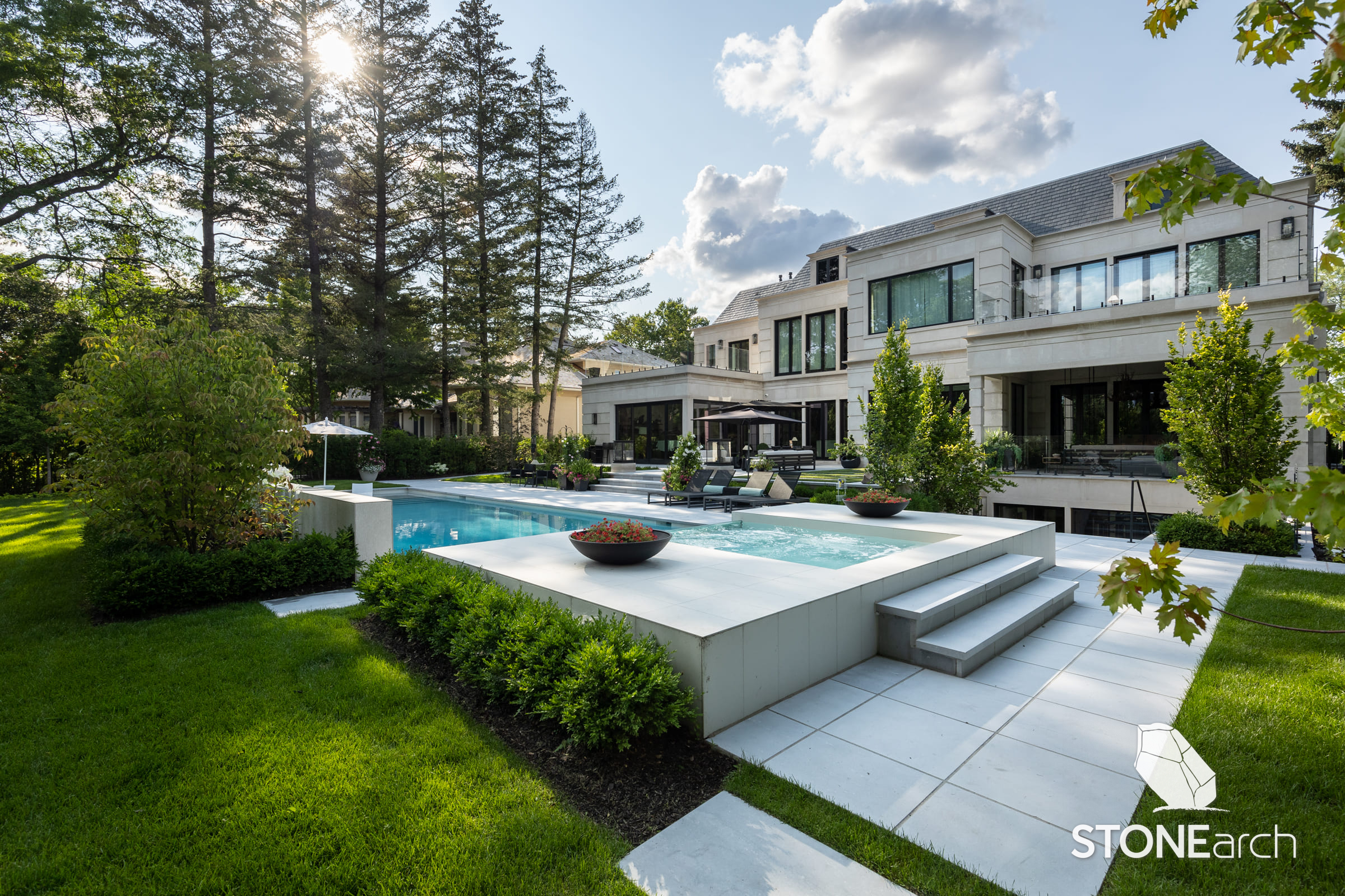 Indus Gray is premium limestone with a neutral and modern tone of gray & white hues. The sandblasted texture of this limestone makes it suitable for North American climate providing a non-slip surface. Indus Gray stone is a recent introduction to our range of premium landscaping products. This stone is often titled as the “most modern landscape stone” as it provides a very clean, contemporary look. The stone does have some bright white and darker coloured striations and veins that occur naturally, adding to the elegance and beauty of the stone. Indus Gray brings a new definition to the modern landscape designs of North America and is often commended as the top stone used by landscape architects in Canada. This stone is available in a variety of products such as Pavers, Rock-faced Copings, Bullnose Pool Copings, Straight-edge Copings, Steps & other custom landscape products.