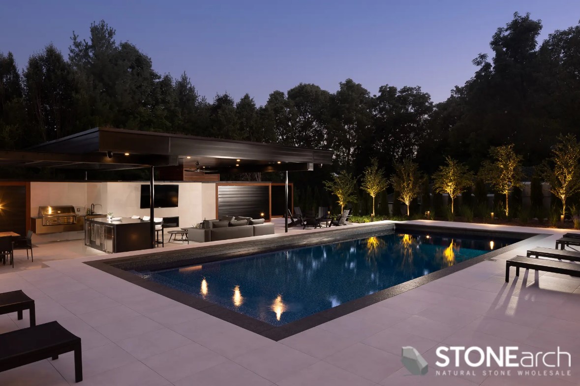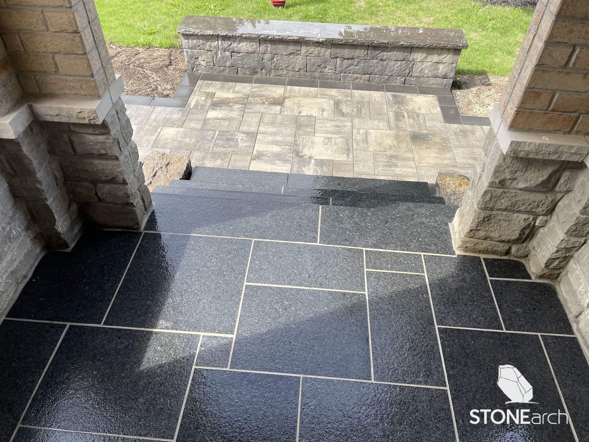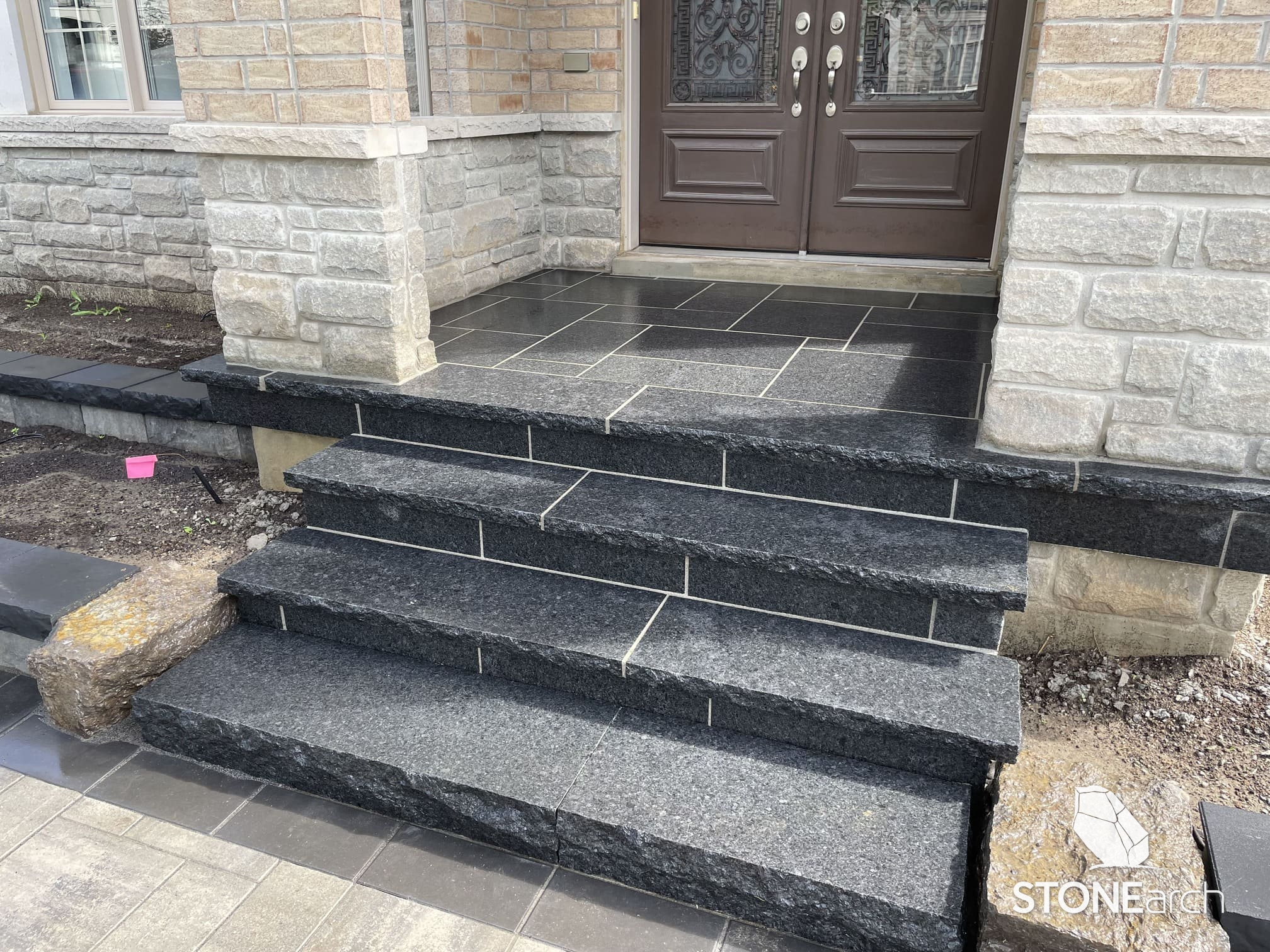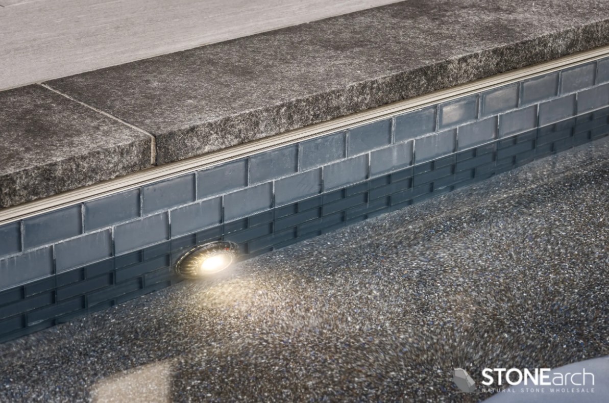 Onyx Black is a brand-new black granite launched earlier in 2012. The unique finish on this granite allows for a sparkled appearance, particularly in sunlight, as the fine crystals shine and reflect the sunlight. The surface of the stone has a very unique combination finish included flamed, brushed, and waterjet, allowing for a deep, rich dark black granite. Onyx Black is the top choice for landscape architects looking for a deep rich black granite, and is the most popular stone for pool copings, steps, and ultra-modern walkways & projects. This stone is available in a variety of products such as Pavers, Copings, Wall Copings, Bullnose Pool Copings, Pier Caps, Steps, Curbs, Tiles, etc. Also popularly known by various names like: Jet Black, Black Pearl, Midnight Black, Sombre, and Cambrian Black.