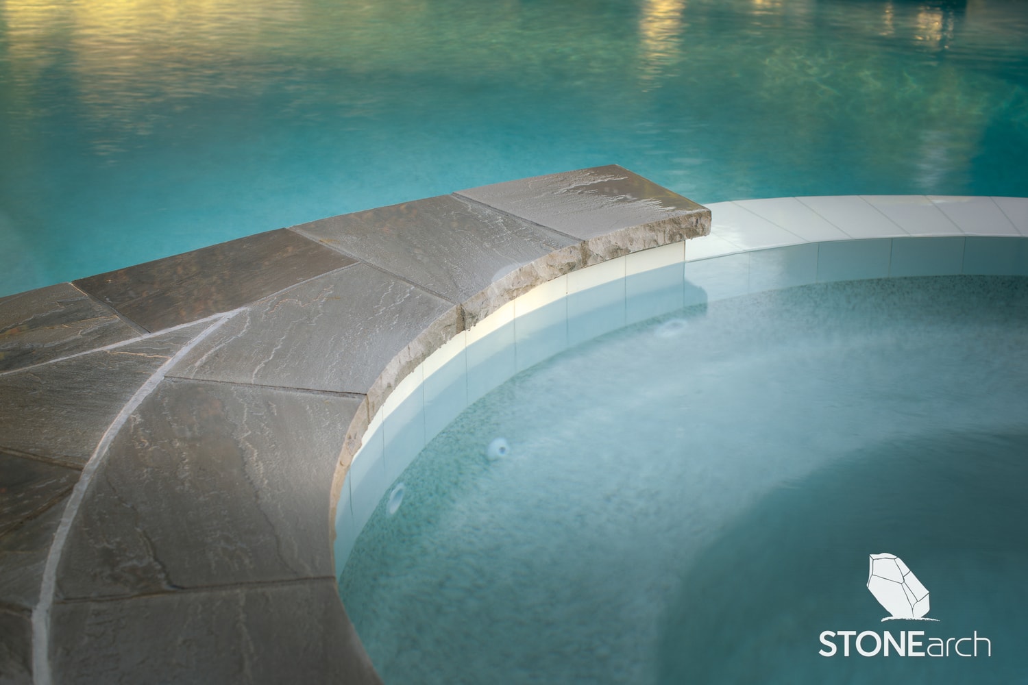 Slate Gray has color tones that range from light to medium shades of gray with a slight hint of beige. It has a very subtle natural surface & striations. This color is suitable for a wide range of applications. It blends well with the natural colors of a garden patio environment and is also dark enough to stand out as a featured entrance stone against lighter background architectures. Due to the neutral shade of this stone – it is the most popular landscape stone for many landscape architects, landscape designers, landscape contractors and estate home builders. This stone creates a stunning landscape for any residential landscape or commercial landscape project. The color of this stone is very trendy and it is complementary to armout rocks. This stone is available in a variety of products such as Pavers, Copings, Wall Copings, Bullnose Pool Copings, Pier Caps, Jumbo Slabs, Cobbles, Steps, Curbs, Tiles, etc. Also popularly known as, Banas Slate Gray, Slate Brown.